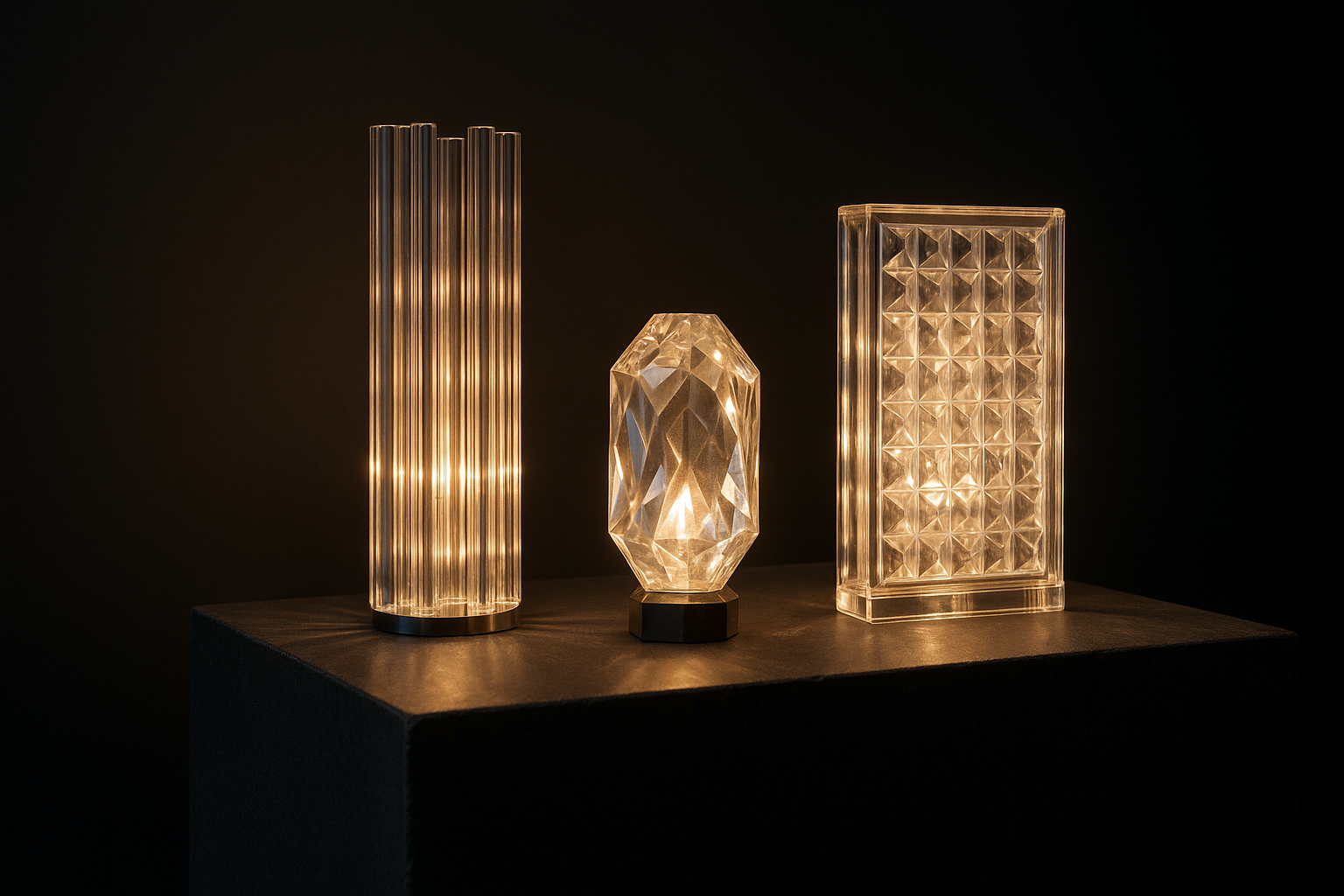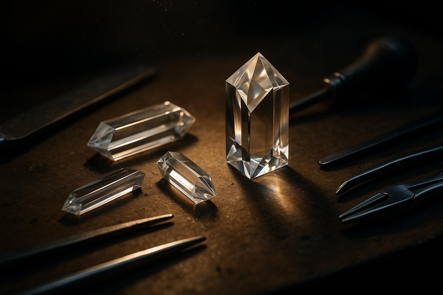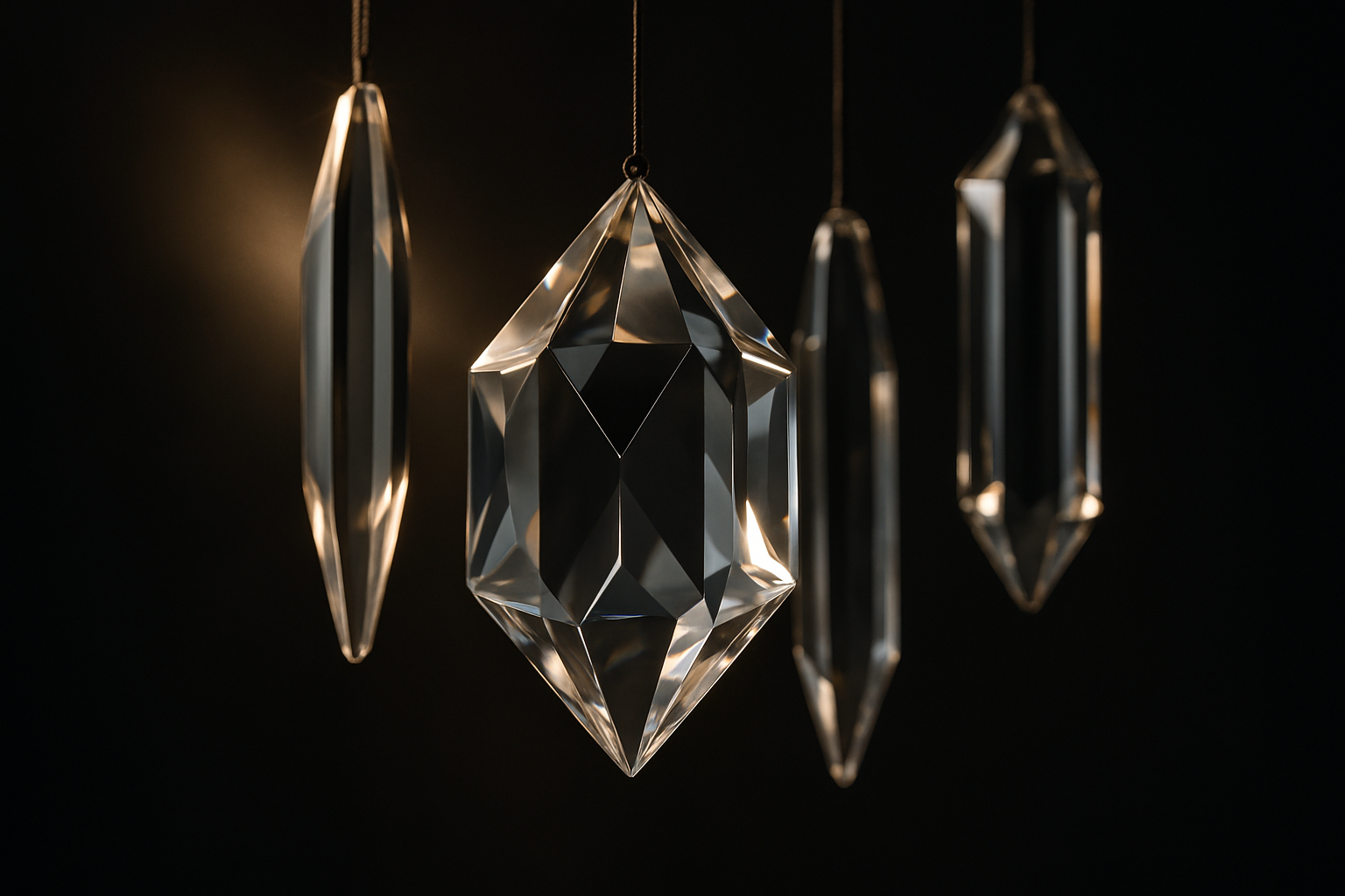High-quality crystal carries a clarity that turns light into architecture — sharp edges, soft halos, shifting reflections.