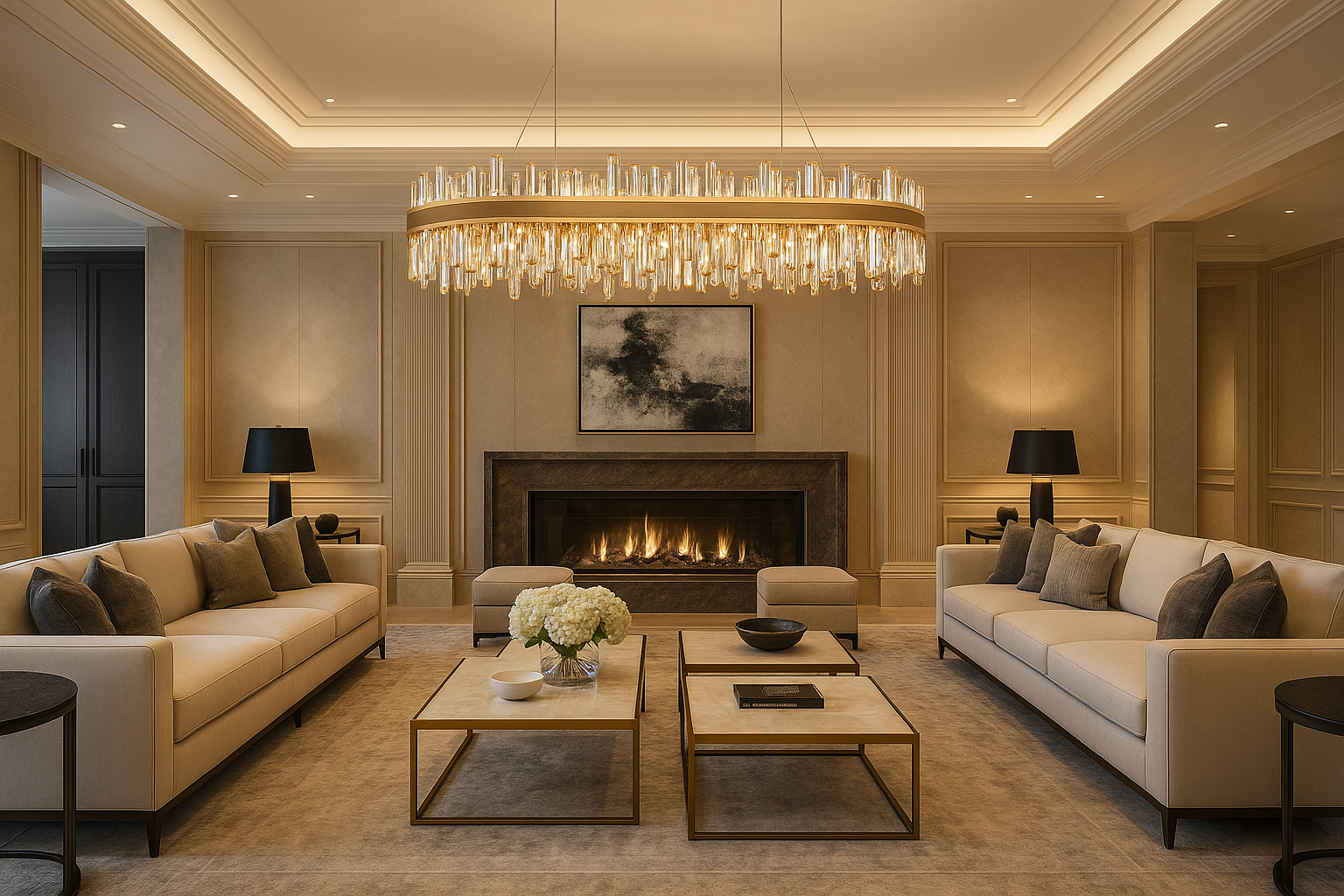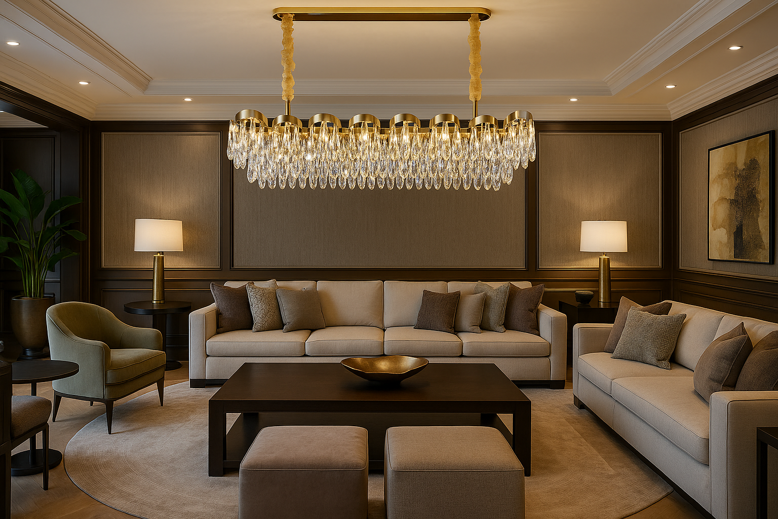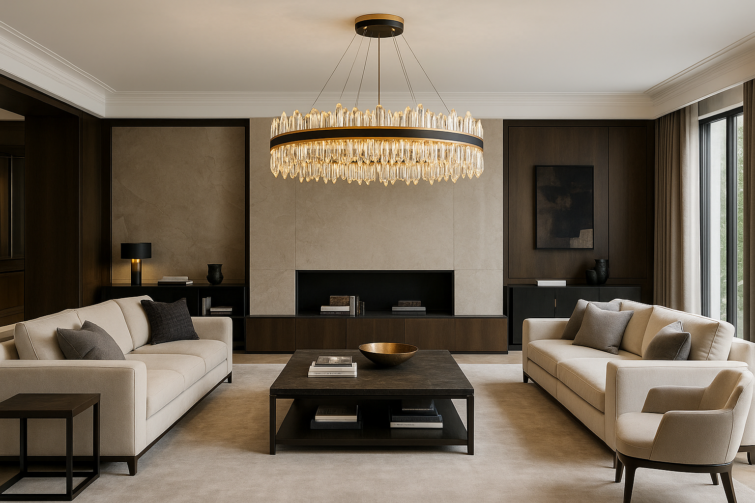 Crystal amplifies the architecture around it —adding brilliance to open spaces, glow to quiet corners, and depth to every room.