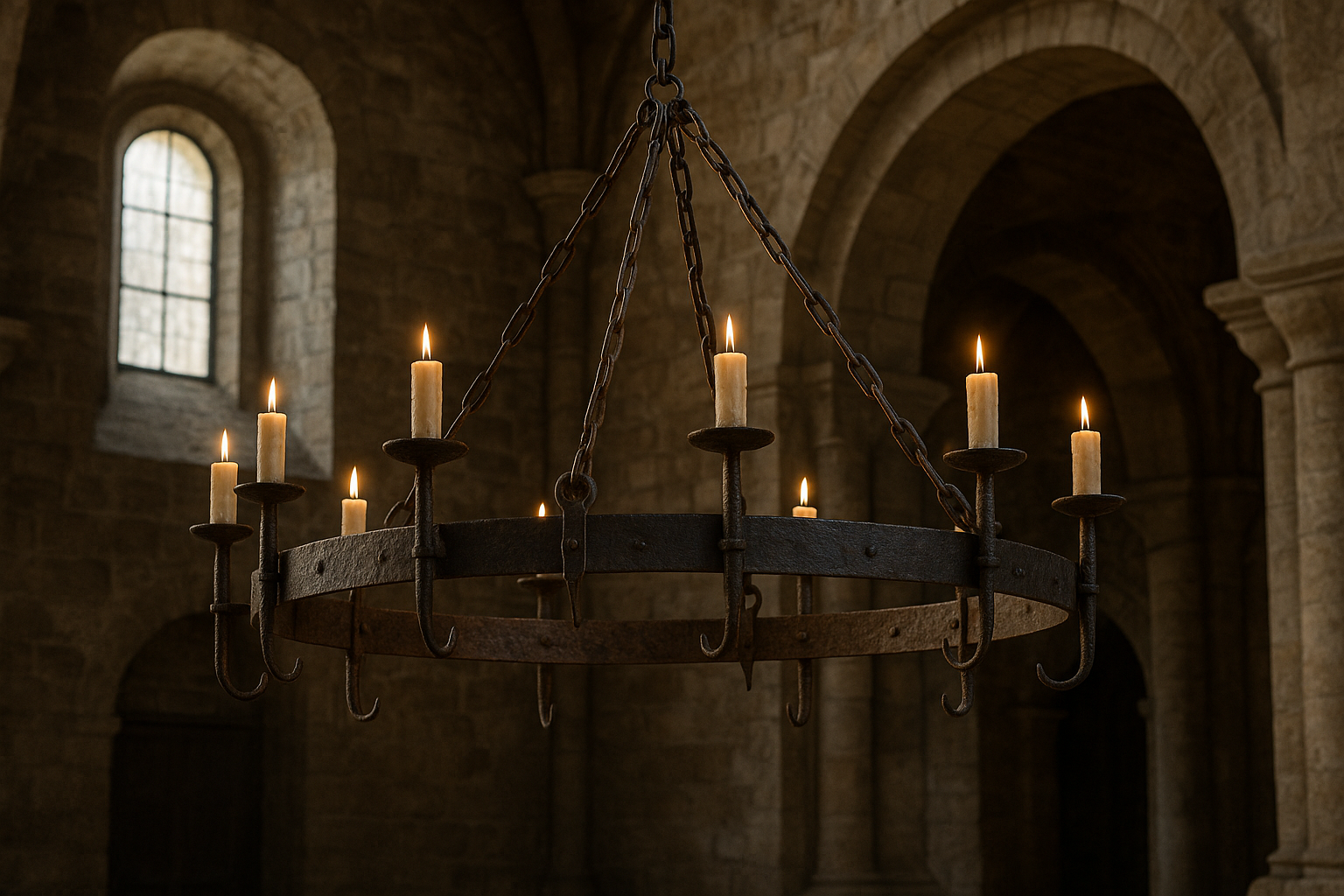 The earliest chandeliers appeared in medieval European churches and noble estates — crafted in wrought iron and lit by candles.